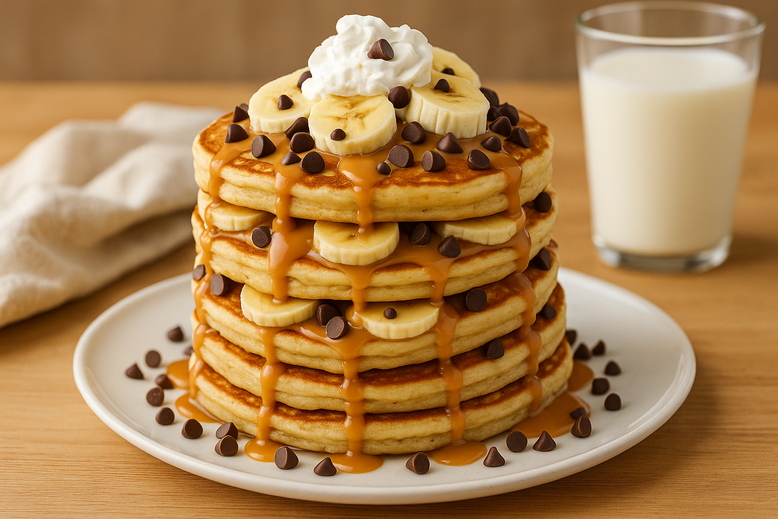 - Stack pancakes high (the Scooby way!) with layers of banana slices, chocolate chips, and drizzled peanut butter in between.