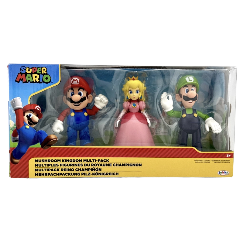 Bring home the heart of the Mushroom Kingdom with this premium 3-figure multi-pack! This officially licensed Jakks Pacific set features Mario, Luigi, and Princess Peach, each with vibrant details and poseable limbs. Perfect for collectors or play, this boxed set is a standout addition to any Super Mario fan’s collection.