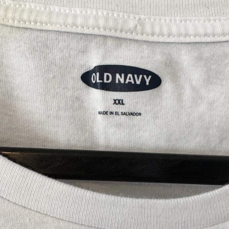 This white vintage-style tee features a bold graphic of all four Teenage Mutant Ninja Turtles—Leonardo, Donatello, Michelangelo, and Raphael—posing front and center against a vibrant yellow background. Made by Old Navy, the shirt offers a relaxed fit with a soft cotton feel. There is a small stain on the front right side, but the graphic remains bright and clean. A great pick for fans of classic ’80s and ’90s animation.