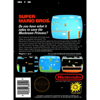 • Do you have what it takes to save the Mushroom Princess? You’ll have to think fast and move even faster to complete this quest! The Mushroom Princess is being held captive by the evil Koopa tribe of turtles. It’s up to you to rescue her from the clutches of the Koopa King before time runs out. But it won’t be easy. To get to the Princess, you’ll have to climb mountains, cross seas, avoid bottomless pits, fight off turtle soldiers and a host of black magic traps that only a Koopa King can devise. It’s another non-stop adventure from the Super Mario Bros.!
