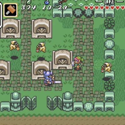 The Legend of Zelda: A Link to the Past is a top-down action game with puzzle-solving elements (similar to the original Legend of Zelda). Players assume the role of Link, and their goal is to rescue Princess Zelda and save the land of Hyrule. All combat in the game is action-oriented - the player can make the protagonist swing the sword at enemies with a press of a button, or spin the sword around for a more powerful attack by holding down the button until it is charged.
