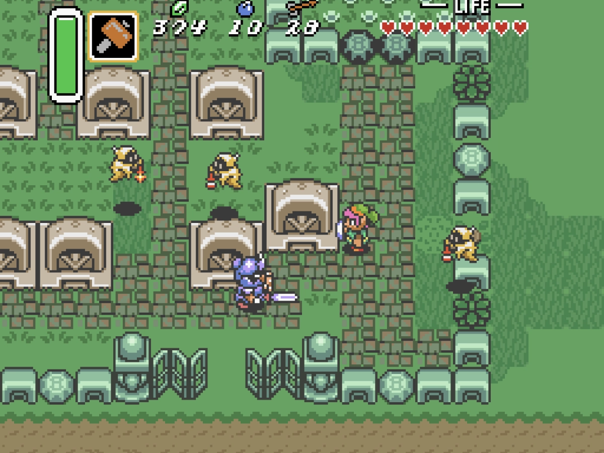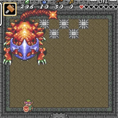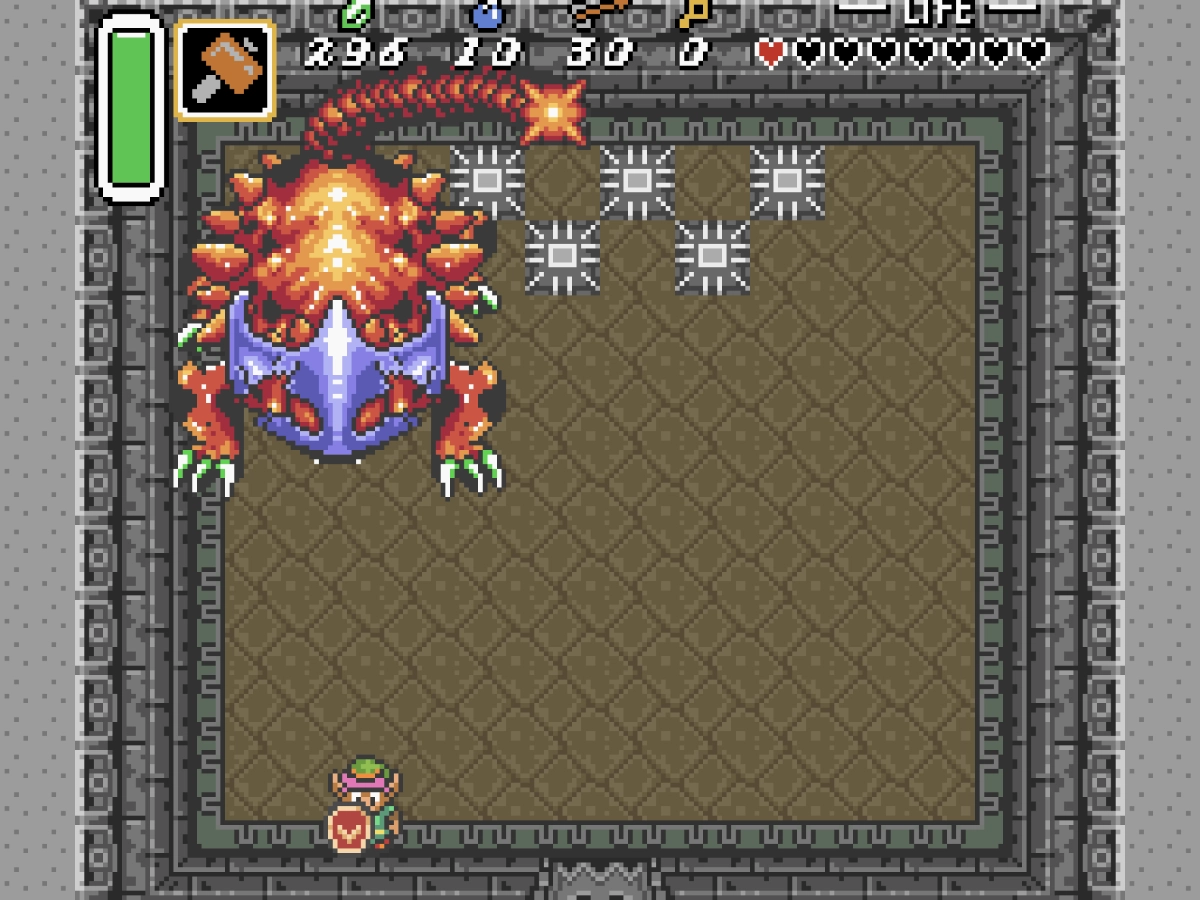 Progression through the game is done by conquering a series of dungeons - each dungeon has its own special item associated with it, such as the hookshot (which latches onto a far-off object and pulls Link across) or the hammer (which can be used to flatten objects in your way). Most of these dungeons are rendered impassable until the dungeon's particular item is acquired; from there, the rest of the dungeon becomes accessible due to Link's latest new ability. The bosses of each dungeon are also themed to that level's particular item.