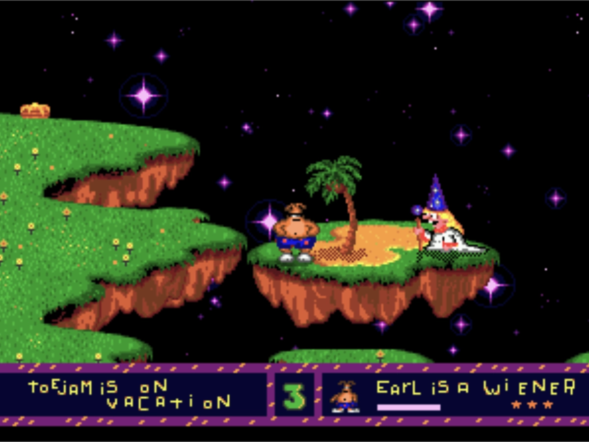 Check it out... We're ToeJam and Earl. And we ran into a small problem. More specifically, a large planet (I shoulda never let Earl drive...). Help us hunt down the pieces to our rocket ship and we'll let you jam out some tunes on our megawatt rapmaster. Deal?